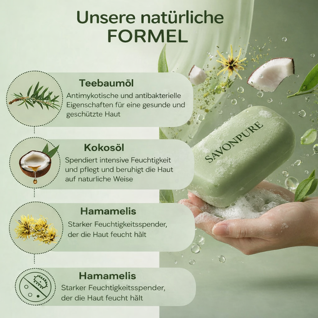 Was uns auszeichnet Natürliche Inhaltsstoffe: Unsere Produkte werden aus reinen Inhaltsstoffen hergestellt und sorgen für eine sanfte und wirksame Pflege. Umweltfreundlichkeit: Recycelbare Verpackungen und nachhaltige Verfahren. Zufrieden oder Geld zurück: Ihre Zufriedenheit ist unsere Priorität. Aufmerksamer Kundenservice: Bei Fragen kontaktieren Sie uns bitte per E-Mail unter support@savonpure.com.